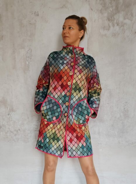 - Wyjątkowy płaszcz gobelinowy, który łączy w sobie elegancję z artystycznym charakterem.