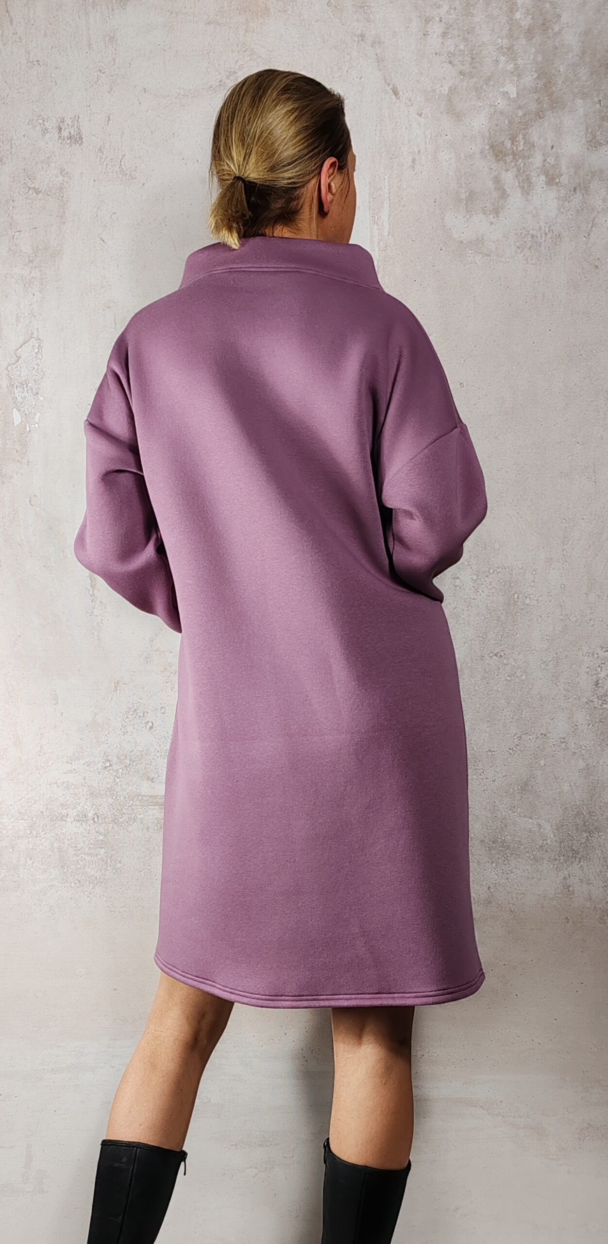 Otulająca sukienka z bawełnianej dzianiny to połączenie elegancji i wygody. Idealna na co dzień, do biura, a także na romantyczną randkę. Wykonana z wysokiej jakości, oddychającej tkaniny, gwarantuje komfort przez cały dzień. Stylowa stójka w stylu chanel dodaje elegancji, a jednocześnie miejski klimat sprawia, że sukienka pasuje na każdą okazję.