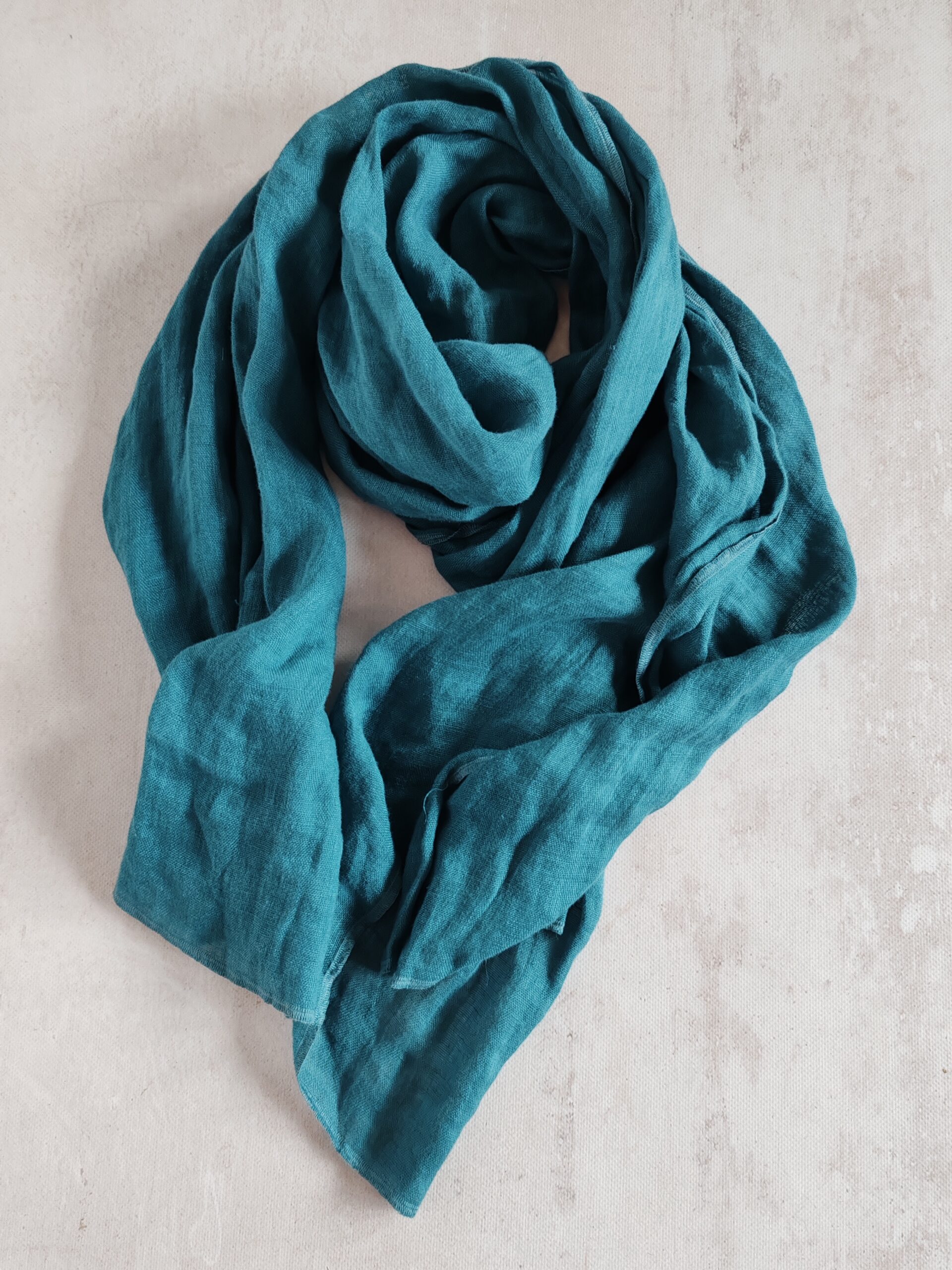 Szal lniany unisex mgiełka został wykonany z naturalnego lnu o lekkiej, siateczkowej strukturze. Jest zwiewny, delikatny i dobrze dopasowuje się do temperatury ciała, zapewniając komfort noszenia.